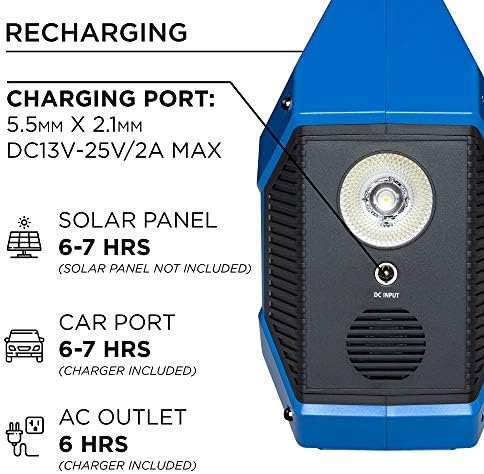 CHARGES AT HOME, ON THE GO, OR IN THE FIELD: Charges to 80% in Less Than 6 Hours Using a Household Outlet or in Less Than 7 Hours in the Car or With a Solar Panel (Panel Not Included)