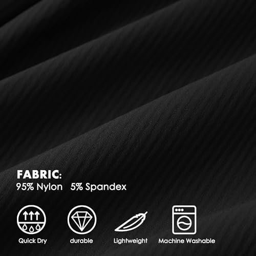 4-way Stretch Fabric: Lightweight, quick dry, woven vertical pinstripes fabric offers stretch for easy mobility.