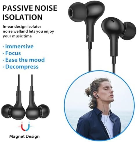 3.5mm Aux Jack Wired Earbuds : 3.5mm audio jack earbuds for Samsung Galaxy A25/A15//S10/S10e/S9/S8/A14/A13/A23/A21/A30s/A03 Core/A52/A42/A32/A71/A51/A21/A11/A50/A20/Note 9/8,for Google Pixel 5a/4a/3a/XL,for Motorola G Stylus/G Power/G Play/G 5G 2023/One 5G Ace/MOTO G100/razr/one,for iPhone 6s/6/5s/5/SE 1st,for iPad Pro 12.9″/10.5″/9.7″,for iPad 9/8/7/6/5/4/3,for iPad mini 5/4/3/2/1,for iPad Air 3/2/1,MP4,MP3,PS5,for OnePlus Nord N300/N200/6/5T/5/3T/3,and other 3.5mm jack mobile