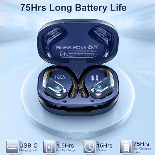 75Hrs Playtime & Dual Power Display: Each ear bud offers up to 15 hours of listening time on a single charge, allowing you to enjoy a total of 75 hours of music by taking turns with the charging case. Wireless earbud feature a dual LED digital display that provides real-time charging case’s remaining power and ear bud wireless bluetooth charging status and plan your usage accordingly. Say goodbye to battery anxiety! Bluetooth headphones support wired charging with a Type-C cable(included in the package).