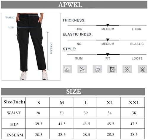 Refer to APWKL Women’s Hiking Cargo Pants Size Chart and Choose the Correct Size