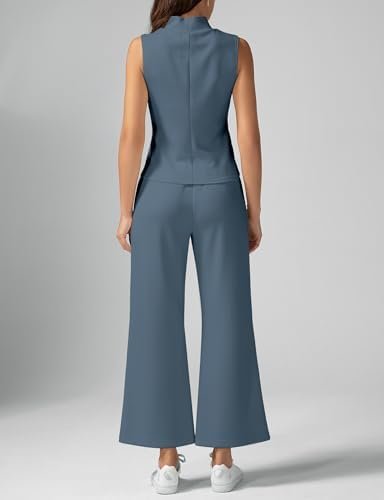 Women’s Summer 2 Piece Outfits Mock Neck Tank Top Cropped Wide Leg Pants Lounge …