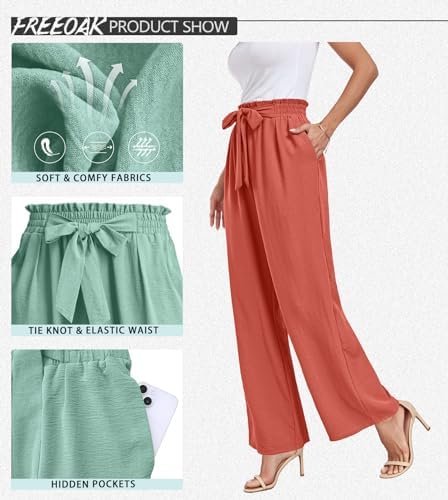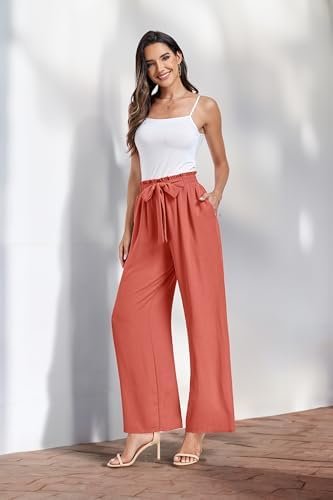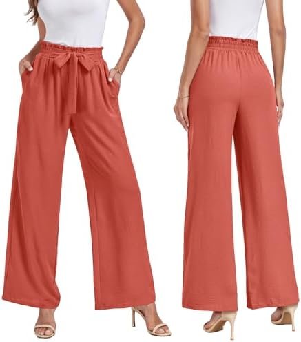 Womens Wide Leg Pants High Waist Flowy Adjustable Knot Loose Trousers Casuals Lo…