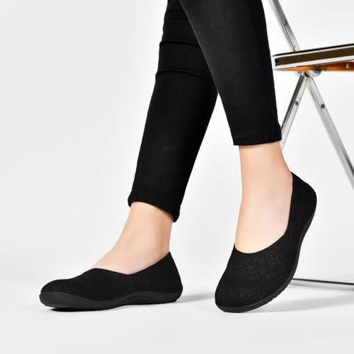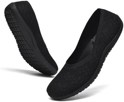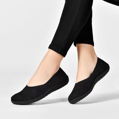 Women’s Wide Toe Box Flats Shoes Knit Ballet Flat Slip-on Dress Walking Comfort …