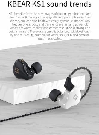 Crystal Clear Sound : Many customers mentioned in the comments below. KS1 in ear monitor headphones adopts dual magnetic circuit single DD unit. The DD is added an independent rear sound cavity, which can quickly accumulate and compress air to increase power and details. This immersive wired earbuds features a powerful low frequency response, mellow midrange performance, transparent high frequency, great vocal resolution, wide sound field, richer instrument details, and delicate music performance.